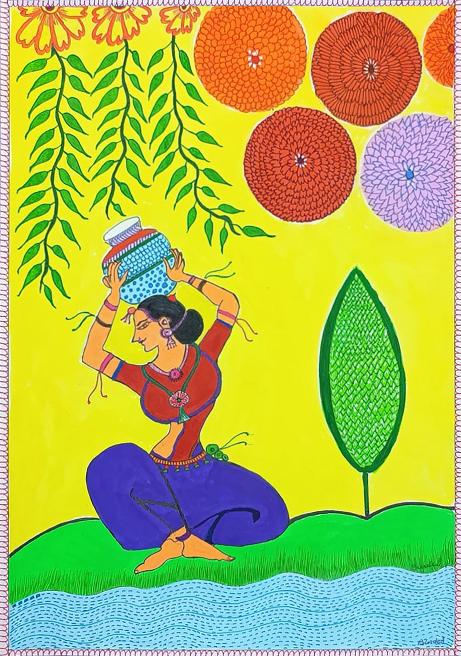 Expertly hand-painted on 15″ x 21″ paper, this frameless piece showcases multi-colour artistry on a warm yellow base. Each stroke carries the precision and patience of a skilled artisan, making every painting a unique expression of beauty and culture. The fine ornamental work and mythic elegance make it a perfect centerpiece for both modern and traditional interiors.