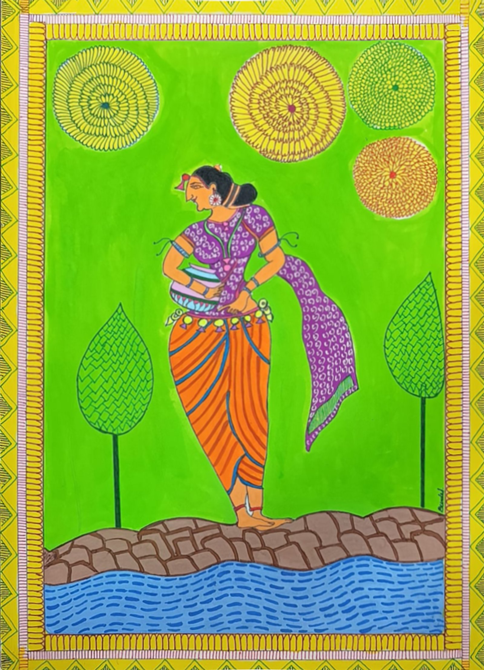 Immerse yourself in the timeless beauty of Indian tradition with the Hand-Painted Frameless Pattachitra Woman Portrait Painting — a vivid homage to grace, devotion, and heritage. Painted in the intricate Pattachitra style, this artwork celebrates feminine divinity through delicate lines, rich storytelling motifs, and expressive detailing.